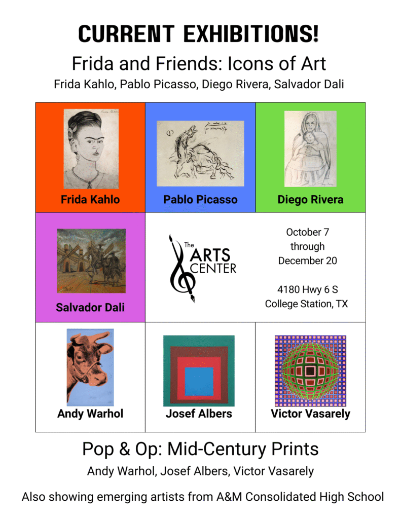 Local vendors and artists show their Holiday inspired artwork at our Holiday Market! Visit the Arts Center at 4180 S Hwy 6, College Station, TX 77845